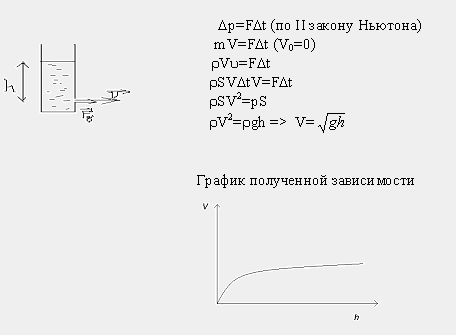 Выведем теоретическую зависимость V=V(h), где V – скорость истечения струи, h – высота столба